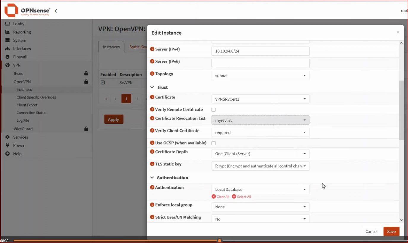 Dalla versione 25.7 in poi di OPNSense, per creare un Server VPN con OpenVPN, sarà obbligatorio utilizzare il tab instances.