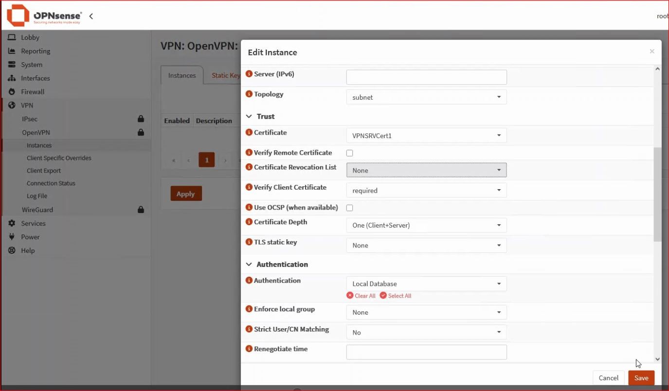 Come Creare una VPN Road Warrior su OPNsense con OpenVPN Instances